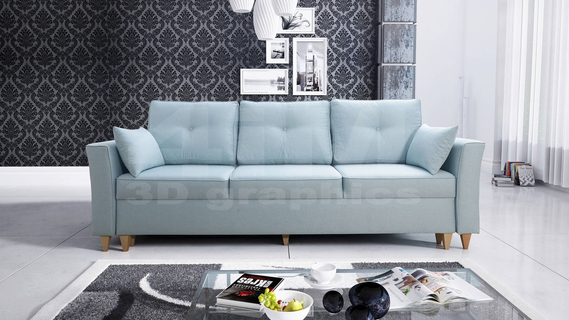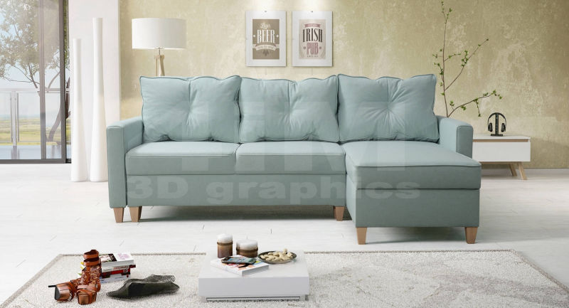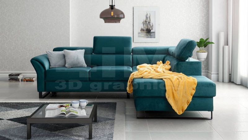 Tworząc wizualizację mebli tapicerowanych bazujemy na zdjęciach produktu.